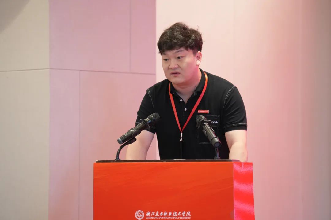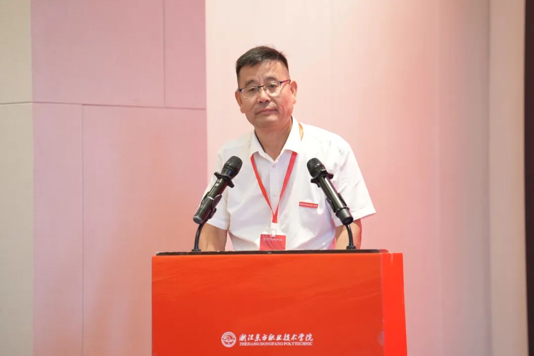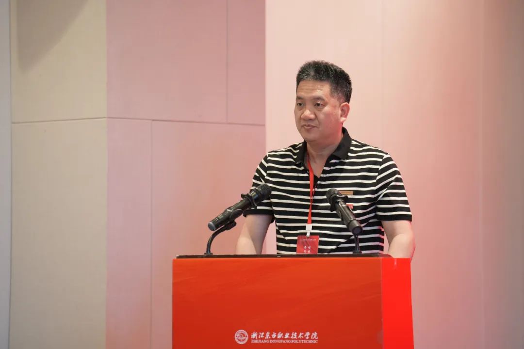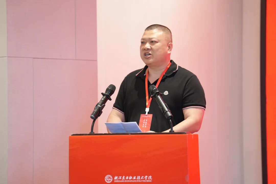 第一届金华校友会会长周峰发表任职感言。他对母校给予他的信任和校友的厚爱表示感谢,并表示,金华校友会将严格遵守《浙江东方职业技术学院校友会章程》,秉持着“联络校友、服务母校、奉献社会”的宗旨,搭建资源共享平台,助力校友成长与地方经济发展。