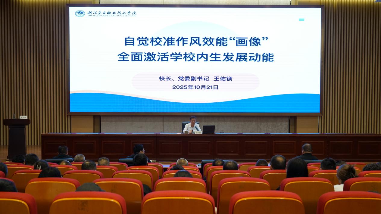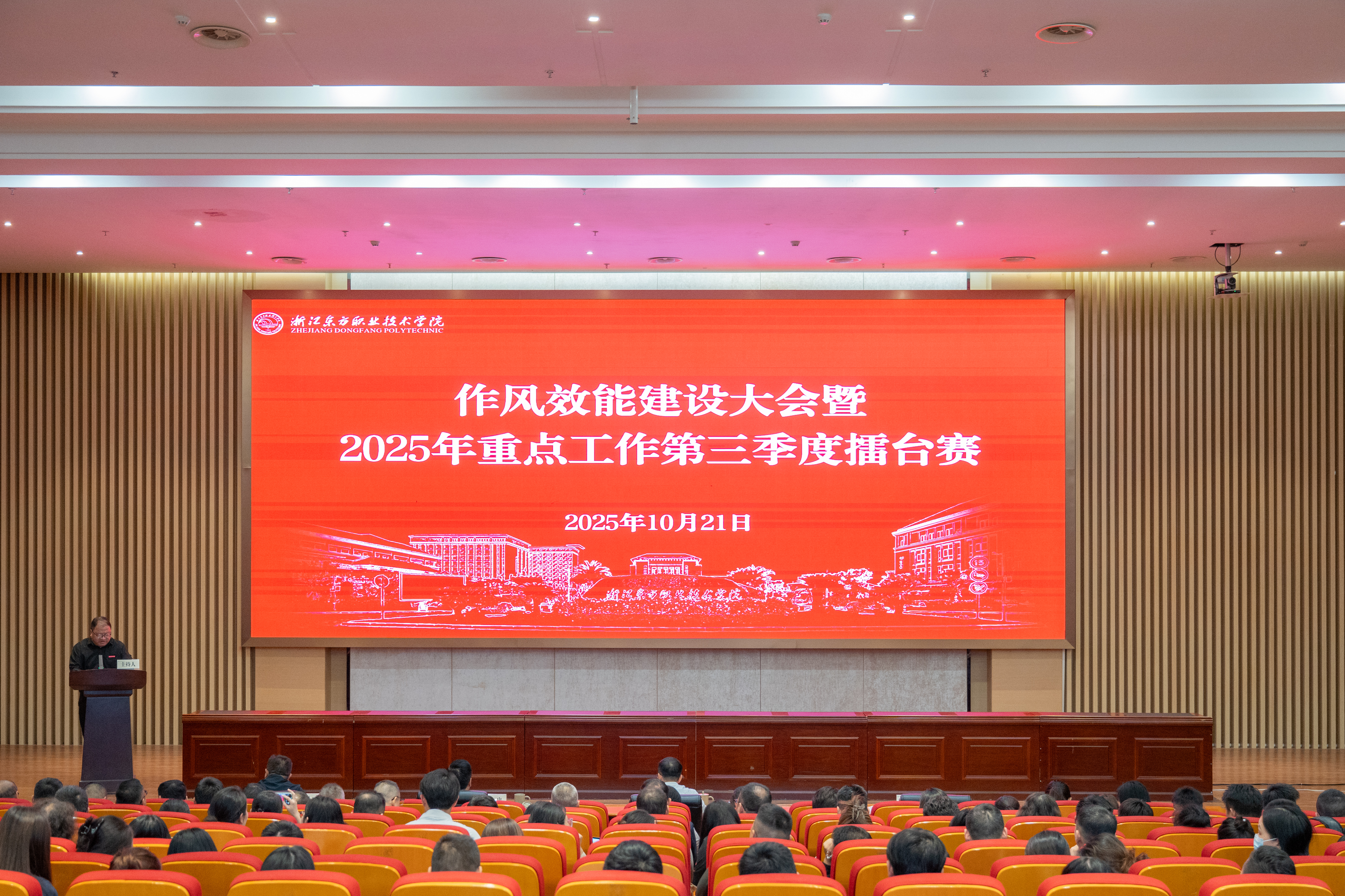 10月21日下午,浙江东方职业技术学院召开作风效能建设大会暨2025年重点工作第三季度擂台赛,落实巡察整改要求,复盘审视作风顽疾,动员部署未来发展,以一场“效能革命”和“作风洗礼”全面激活学校内生动力。全体校领导、中层干部、行政人员和第三届作风效能监督员参加会议。