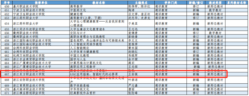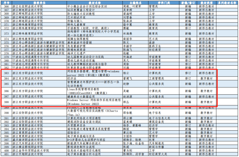 此前,学校已有1部教材荣获首届全国优秀教材一等奖,12部教材立项“十四五”国家职业教育规划教材,7部教材立项“十三五”国家职业教育规划教材。22部教材立项浙江省普通高校“十三五”新形态教材项目,2部立项浙江省“十四五”首批重点教材建设项目。