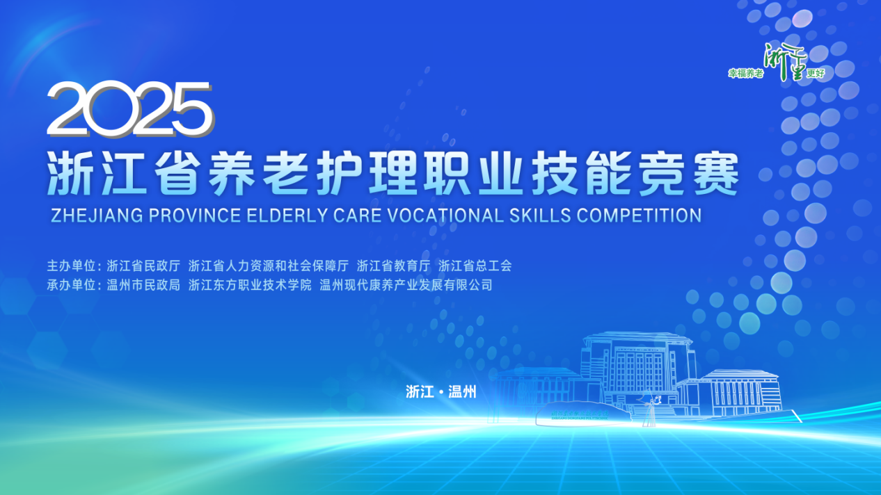 9月24日至26日,由浙江省民政厅、浙江省人力资源和社会保障厅、浙江省教育厅、浙江省总工会联合主办,温州市民政局、浙江东方职业技术学院、温州现代康养产业发展有限公司共同承办的“2025浙江省养老护理职业技能竞赛”成功举办。本次竞赛汇聚全省32支队伍、55名选手同台竞技,聚焦养老护理职业技能提升与人才队伍建设。