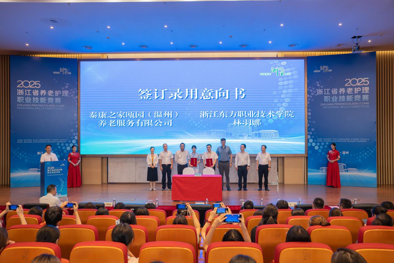 本次竞赛的一大亮点是实现了“赛、展、聘”的有机结合,将技能比拼与人才供需有效对接。竞赛期间特别组织的就业对接会,吸引了七家省内康养领域头部企业参与。企业进行现场宣讲,赛后并与学生选手展开深入交流,在闭幕式上进行了录用意向书签订仪式。这一举措,不仅为学生铺就了从“赛场”直通“职场”的快速路,也为企业精准选拔优秀人才提供了高效平台,充分体现了“以赛促学、以赛促训、以赛促评、以赛促建”的办赛宗旨,形成了人才培养与产业发展的良性循环。