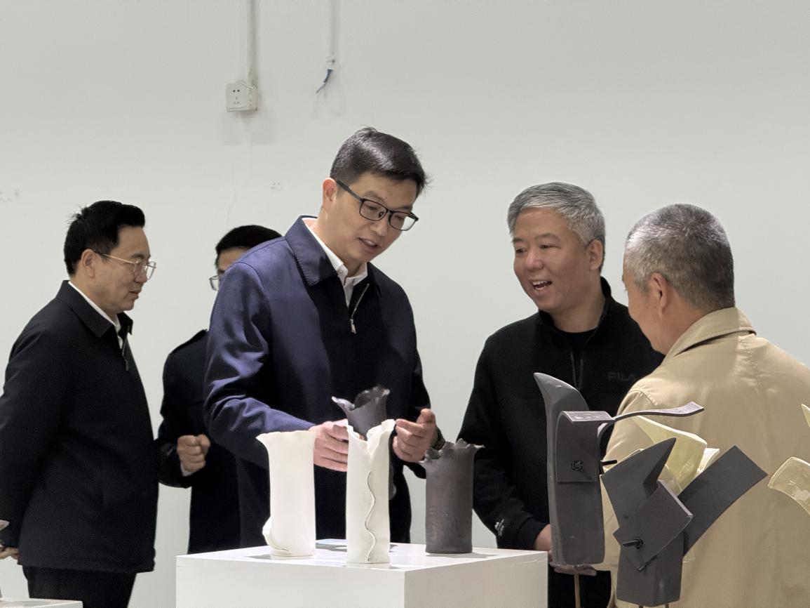 黄方雷一行走访了瓯窑学院,实地考察学院在学术研究、人才培养、文化传承创新等方面的建设成果。在随后召开的座谈会上,童文阳详细介绍了学校办学历史、专业特色、人才培养成效以及近年来在产教融合、社会服务等领域取得的成果,重点围绕与泰国、意大利等国家和地区开展的国际交流合作项目作了系统汇报。他代表学校对市外办长期以来的指导支持表示衷心感谢,希望在外事部门的助力下,进一步拓展海外合作渠道,提升学校国际化办学水平。双方围绕高水平开放办学、海外华侨联络、瓯窑文化出海、“中文+职业技能”项目建设等议题进行了深入交流。双方围绕深化高水平开放办学、加强海外华侨联络互动、推动瓯窑传统文化“出海”交流、推进“中文+职业技能”项目建设、拓展中外合作办学渠道等议题进行了深入交流与探讨。黄方雷对学校近年来涉外工作取得的成效给予充分肯定。他指出,要立足温州实际,深挖本土文化资源,打造一批具有温州辨识度、可持续运营、经得起检验的品牌项目。他希望学校充分发挥瓯窑文化等特色优势,在服务国家对外文化交流战略中展现更大作为,并表示市外办将全力支持学校国际化办学探索,在政策指导、资源对接、平台搭建等方面提供精准服务,共同推动温州职业教育对外开放迈上新台阶。