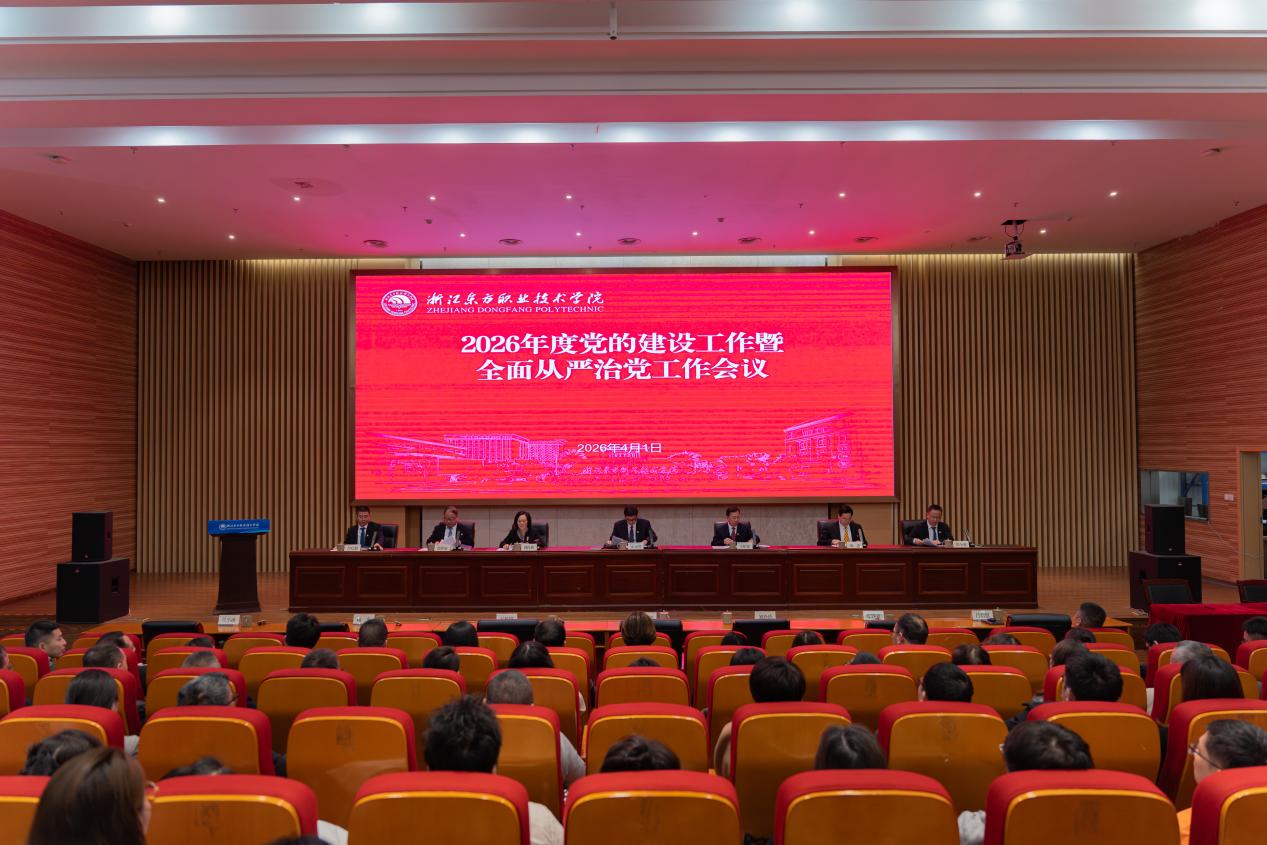 4月1日下午,浙江东方职业技术学院召开2026年党的建设工作暨全面从严治党工作会议。会议深入学习贯彻习近平总书记关于党的建设的重要思想与考察浙江重要讲话精神,严格落实中央和省市委关于党建工作的各项部署要求,系统回顾2025年党建与全面从严治党工作成效,明确2026 年工作方向与重点任务。学校党委书记童文阳出席会议并讲话,党委副书记、校长王佑镁主持会议。全体校领导、中层干部、科长(副科长)、各教研室主任(副主任)、各党支部书记等人员参加会议。