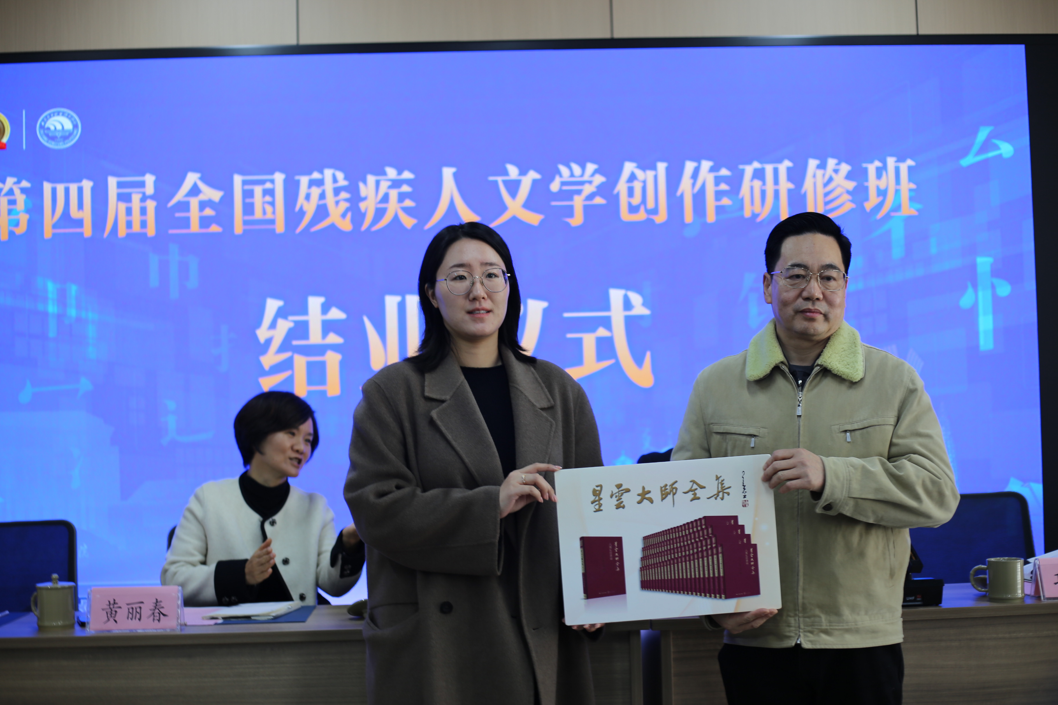结业仪式上,中国残疾人事业新闻宣传促进会向温州市残联、浙江东方职业技术学院捐赠了书法作品;星云文化教育公益基金会向浙江东方职业技术学院捐赠了书籍。与会嘉宾向学员代表和优秀学员分别颁发了结业证书和优秀学员证书。来自内蒙古的张慧婷,四川的雷文作为学员代表分享了研修收获和体会,他们表示,研修班是一次深刻的文学与心灵之旅,从理论知识到创作技巧,大家相互学习,相互启发,提升了文学素养,拓宽了创作视野,收获了同学情谊,今后要以更加坚定的理想信念和饱满的创作热情投入到文学创作中。