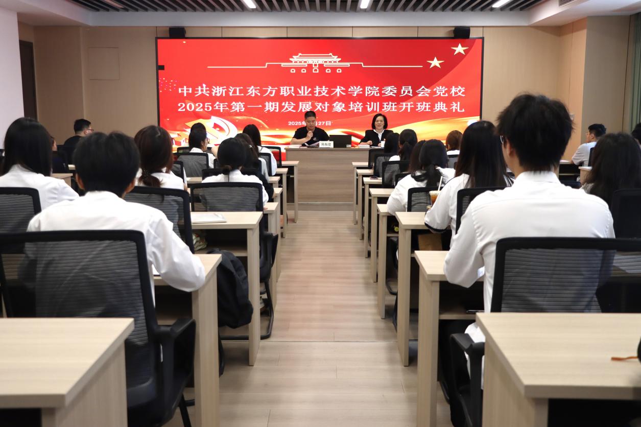 为进一步强化发展对象阶段的培养教育工作,严把党员队伍“入口关”和“质量关”,5月27日下午,中共浙江东方职业技术学院委员会党校举办2025年第一期发展对象培训班开班仪式。学校党委副书记、副校长、党校校长刘玲玲,党委组织宣传统战部部长陈振建出席开班仪式,仪式由陈振建部长主持,来自全校各二级学院、各部门单位的60余名发展对象参加此次培训。