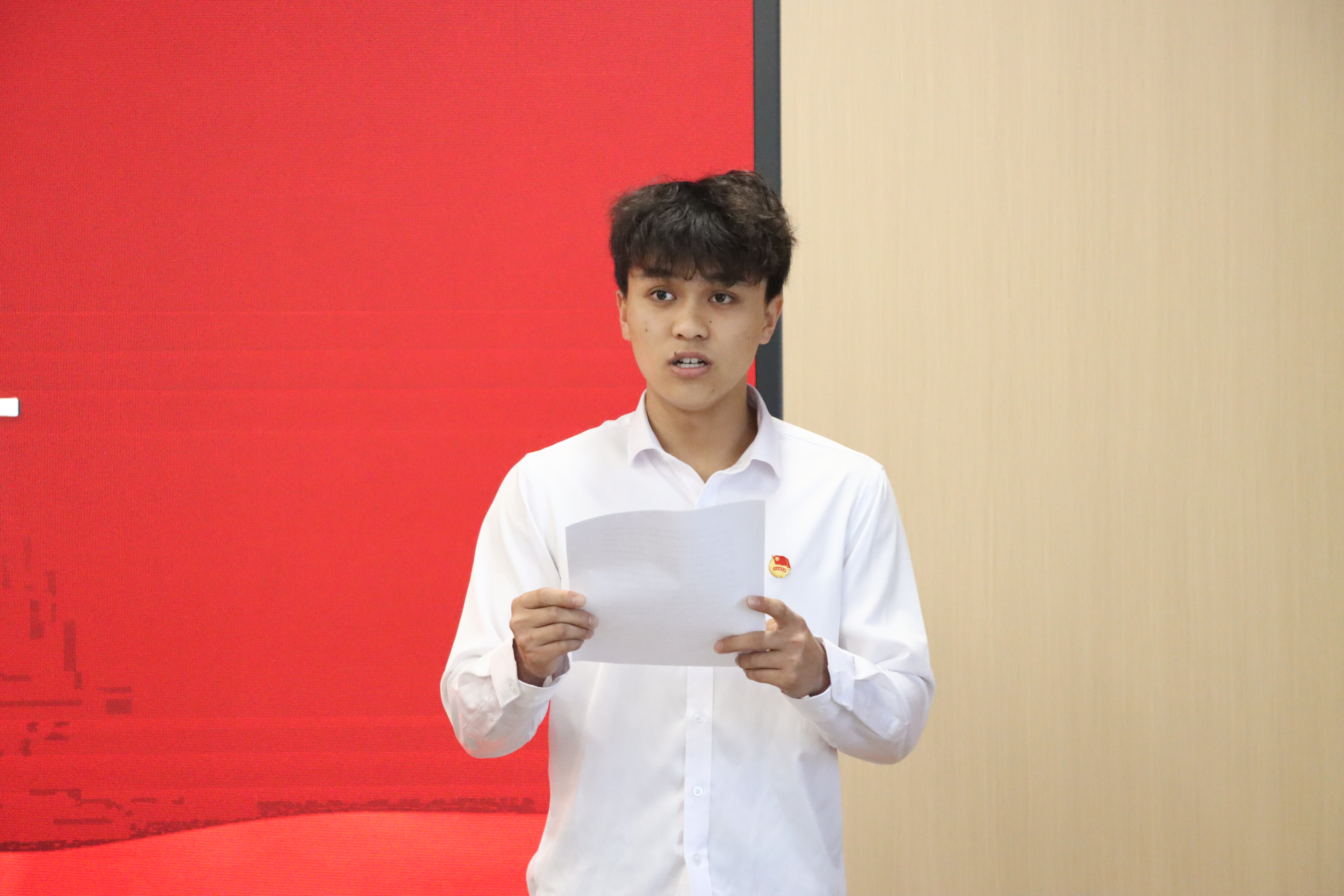 人工智能学院叶凯乐同学作为学员代表发言。他结合自身经历,分享对新时代青年使命的理解与感悟,表示将以此次培训为契机,深学党的创新理论,锤炼过硬本领,以实际行动展现新时代青年的风采。