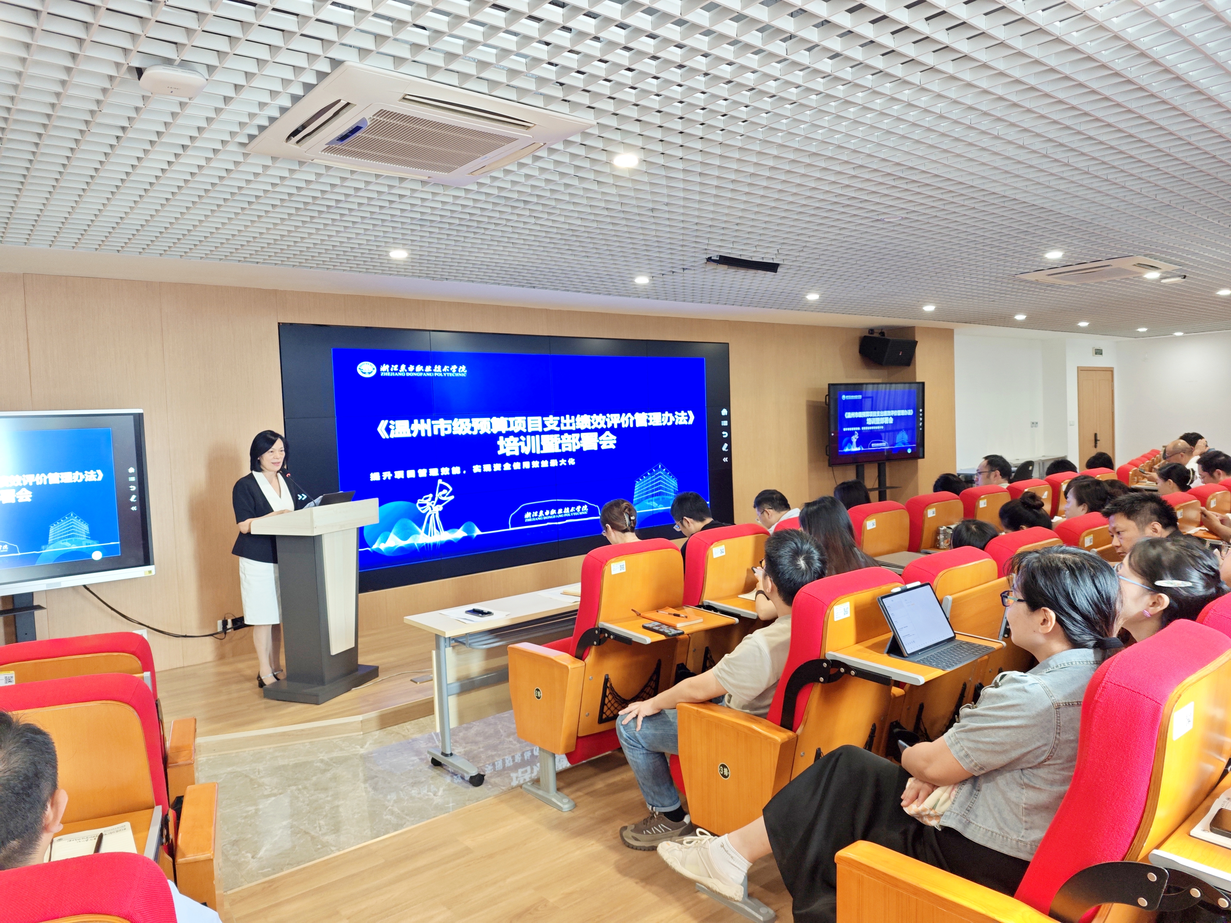 为深入贯彻落实全面实施预算绩效管理要求,优化资金配置,提升专项资金使用效益,9月22日上午,浙江东方职业技术学院在行政楼南怀瑾大讲堂召开《温州市级预算项目支出绩效评价管理办法》培训暨部署会。会议由计划财务处处长蒋蕾主持,党委副书记、副校长刘玲玲出席并讲话,各职能部门、二级学院主要负责人及相关人员参加。