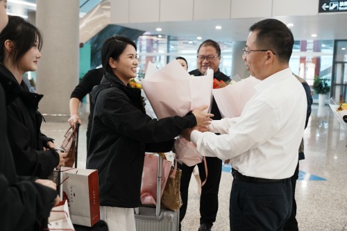 2024年世界职业院校技能大赛总决赛争夺赛公共管理与服务赛道“健康养老照护”赛项中,由浙江东方职业技术学院刘思源、董文瑾两位老师指导,蔡紫依、翁洪心妤、张茹昕、郑妤茹等同学组成的参赛团队凭借出色的表现成功斩获金奖,实现了学校在国家类竞赛的历史性突破。11月2日下午,获奖团队回温,校领导王佑镁、郑铁豪带领党校办、组宣统部、教务处等相关部门前往机场接机慰问。
