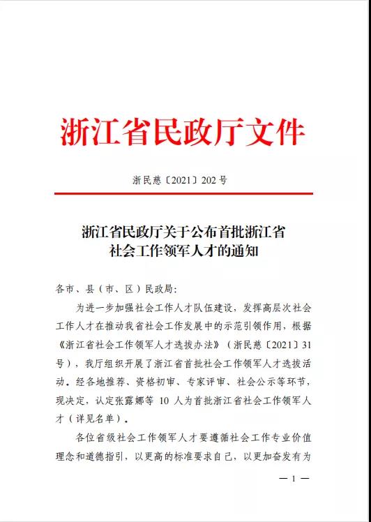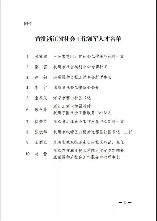 今年,浙江首次在全省开展社会工作领军人才选拔工作,领军人才每年选拔一次,每次不超过20人。首批领军人才共10名,其中2人来自高校,我校人文学院副院长赵静入选!