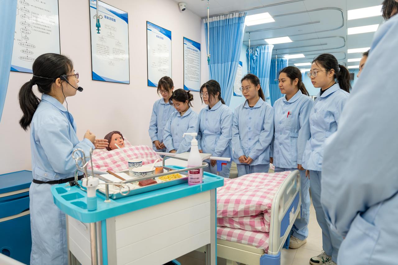 整个人才培养过程,都与康养企业深度绑定。东方学院联合温州现代康养产业发展有限公司、绿城康养集团有限公司等行业龙头企业,打造了“医康养护教”康养综合体。综合体集医疗服务、康复训练、养老照护、教学实践、人才孵化功能于一体,使学生在校内即可进入真实场景开展实训,“晨学理论、午习操作、暮省案例”。