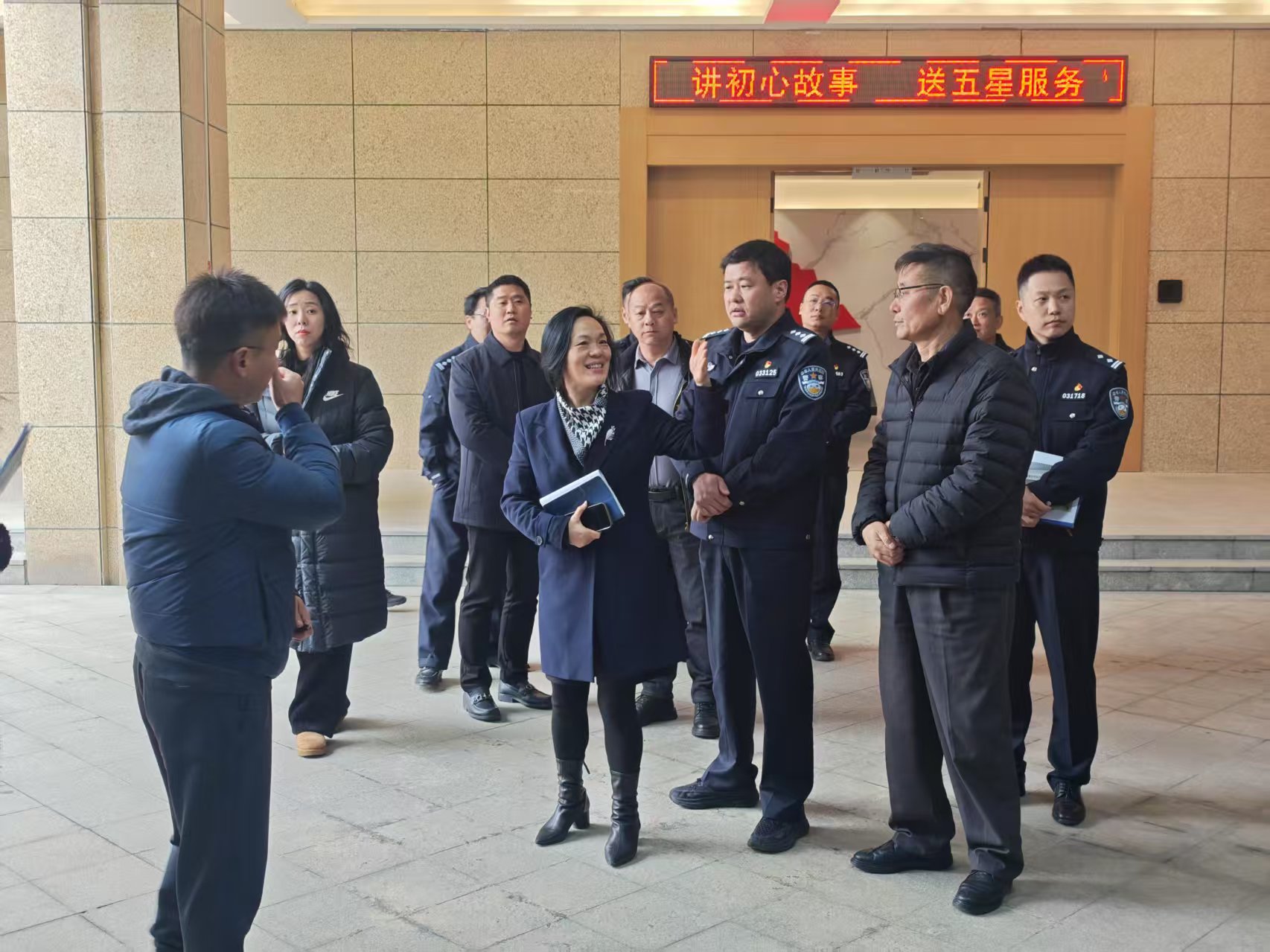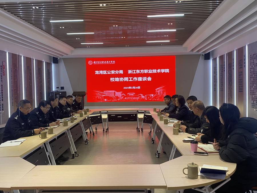 为进一步深入校园安全管理工作,加强校地协同工作,维护校园安全稳定,2月26日下午,龙湾区副区长、公安分局局长叶辉一行7人赴浙江东方职业技术学院调研校园安全管理工作。学校党委副书记、副校长刘玲玲,党委委员、副校长贺文华,组宣统部、学工部、保卫部相关负责人陪同调研。