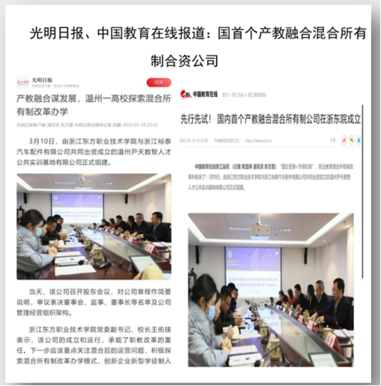 (五)产学合作得到媒体关注。温州市现代服务业职教集团成立、浙南数智造省级产教融合示范基地运营、首个国资混合所有制公司成立运营、全国首个急救教育学院成立、海峡两岸康养产教新生态等做法经验被人民日报、人民网、新华网、央视网、光明日报、凤凰网等主流媒体转载或报道,引起了广泛的关注。