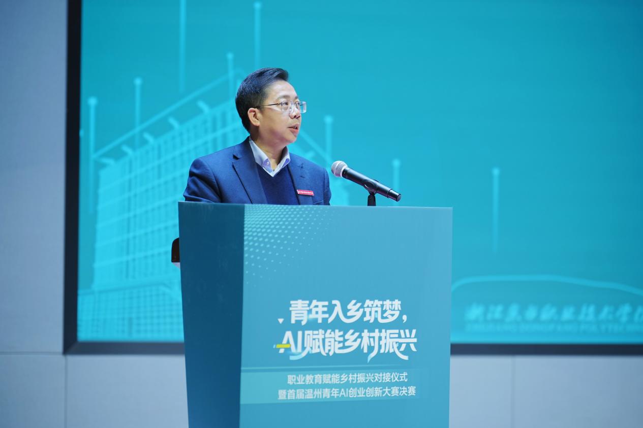 12月26日至27日,聚焦科技、人才与乡村振兴的盛会在浙江东方职业技术学院文成校区成功举办。活动涵盖首届温州青年AI创业创新大赛决赛、职业教育赋能乡村振兴对接仪式暨大赛闭幕式等核心环节,500余名省市县各级领导、行业企业代表、创业导师及高校师生齐聚一堂,共同见证职业教育与AI创新深度融合赋能乡村振兴的生动实践。