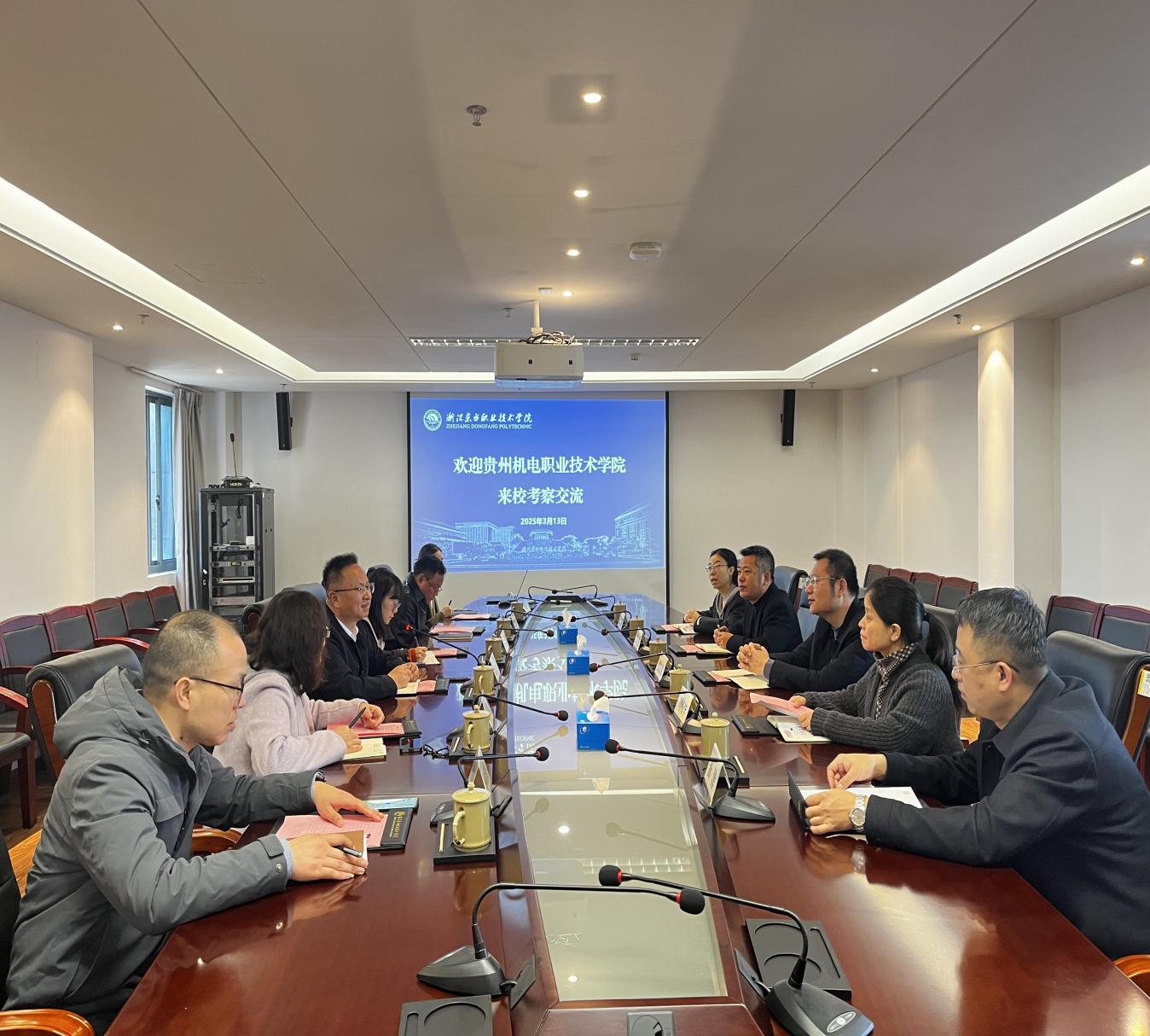 3月13日,贵州机电职业技术学院调研组一行五人到浙江东方职业技术学院考察交流。校党委委员、副校长张小冰,党校办、教务处及智能制造学院相关负责人陪同调研。