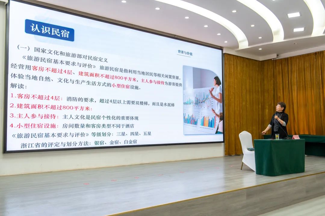 培训中,浙江东方职业技术学院教师和来自民宿管理、网络营销、茶艺等领域专家分别围绕民宿运营提升管理与服务质量提升、新媒体时代旅游营销策划与管理的理念及方式等专题进行授课。学员们全神贯注聆听专家讲解,认真记录重点内容,并表示通过此次培训,提升了服务意识和管理能力,今后将会把所学的知识运用到实践中。