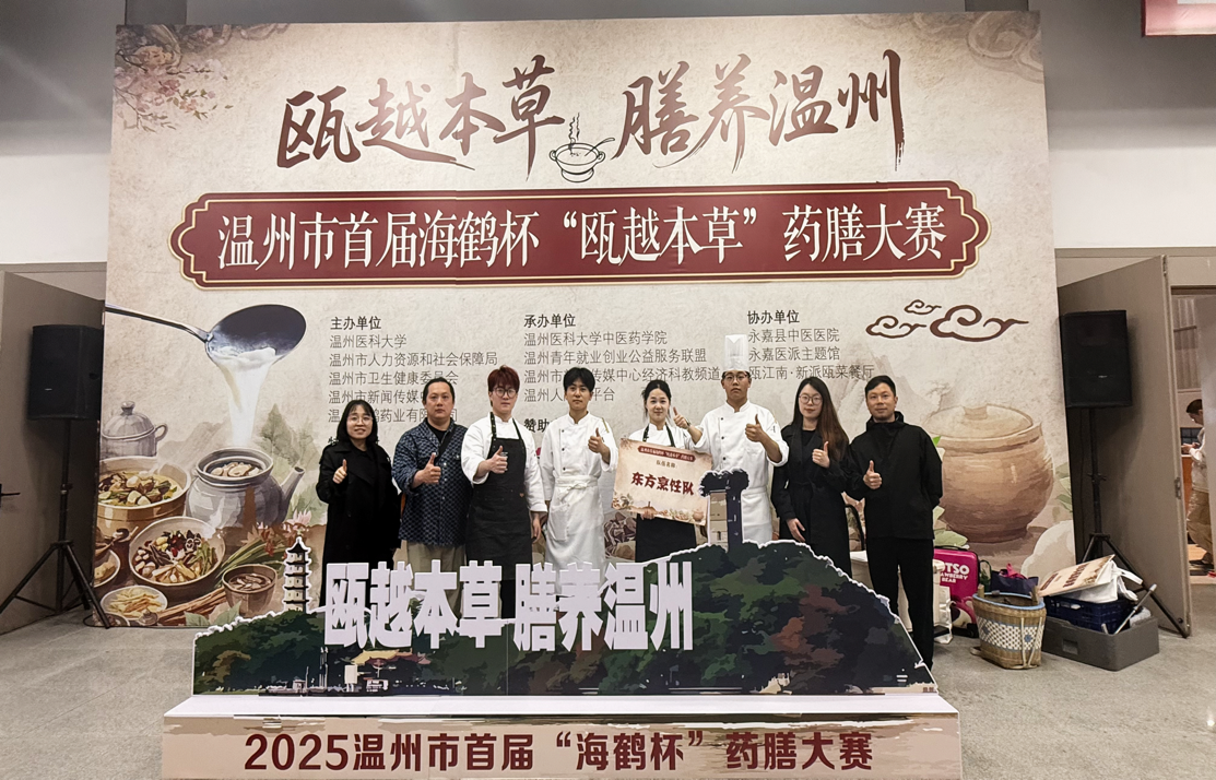 近日,温州市首届“瓯越本草”中医药膳大赛圆满结束,浙江东方职业技术学院东方烹饪队凭借对二十四节气养生智慧的深度挖掘,以作品“翠薏斛香暖鸭汤”和“翠湖糯影”脱颖而出,荣获特色单项奖——“温味传承金典奖”。
