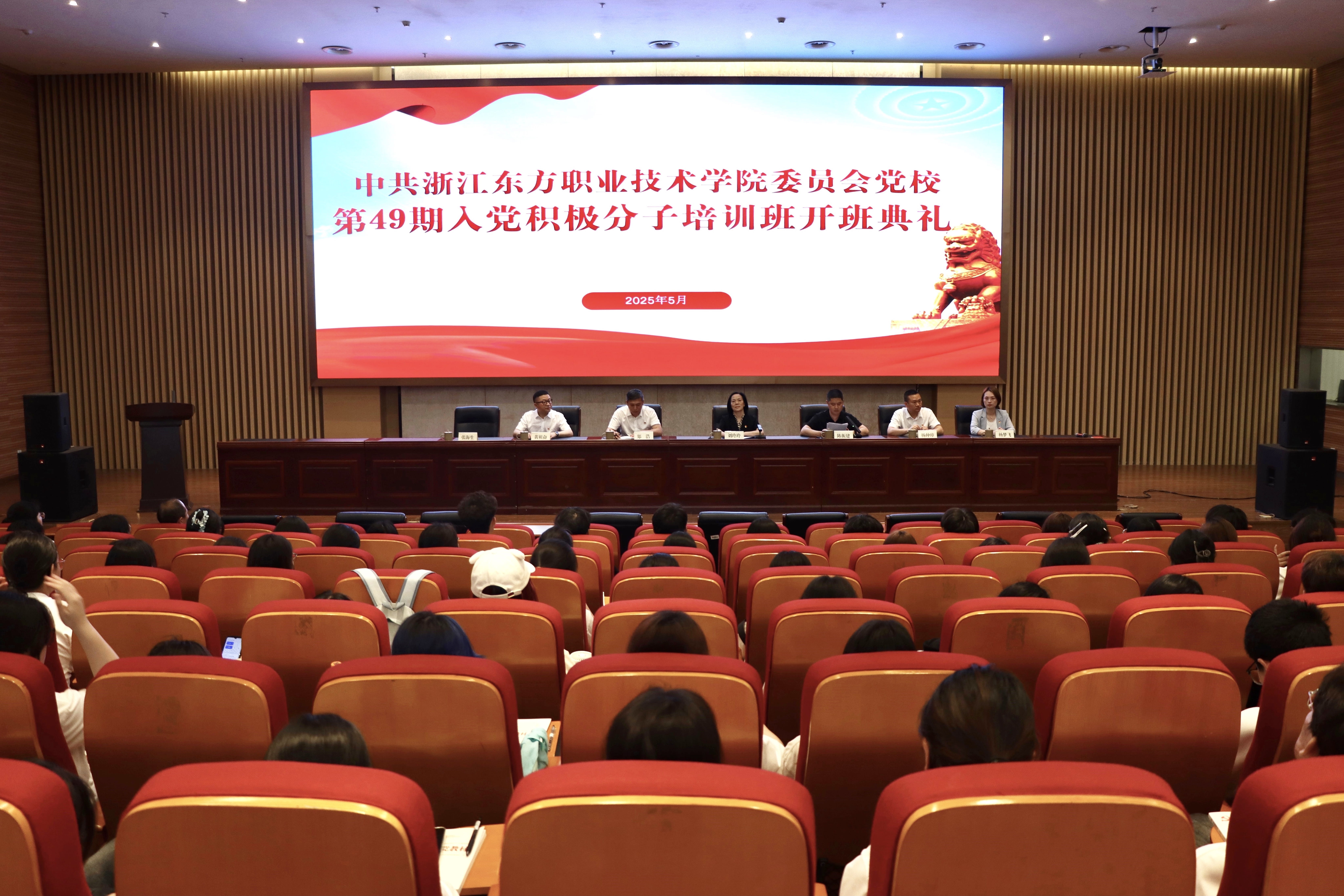 5月6日,浙江东方职业技术学院在学校党委的统一部署下举办了第49期入党积极分子培训班的开班仪式。学校党委副书记、副校长刘玲玲,各二级学院党总支书记及相关部门负责人出席开班仪式,新党员代表和全体入党积极分子参加。开班仪式由组宣统部部长陈振建主持。