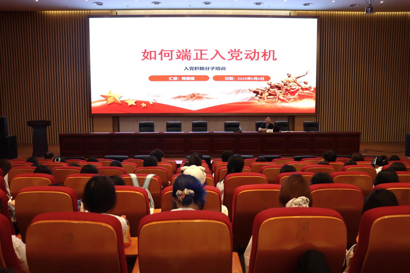 开班仪式结束后,学校党委组宣统部部长陈振建老师以《如何端正入党动》为主题进行第一课堂。陈振建指出,端正入党动机是筑牢正确入党行动的思想根基,各种挑战和考验时,能够始终坚守信念、毫不动摇的核心要素。他鼓励同学们以“第一课”学习为契机,持续自我完善、自我提升,为成长为一名合格的共产党员筑牢基础、创造有利条件。