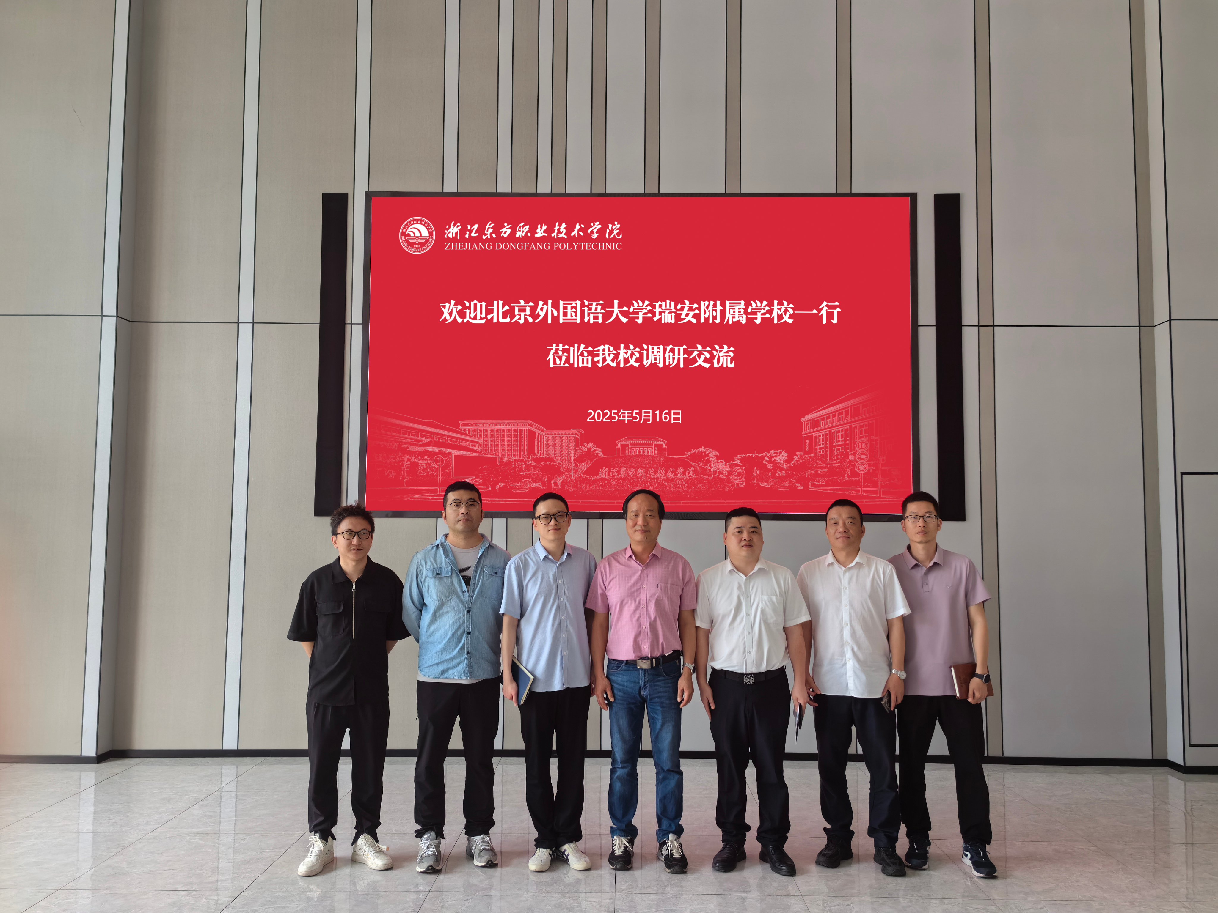 为深化教育数字化转型,探索智慧校园建设经验,5月16日上午,北京外国语大学瑞安附属学校校长率调研组一行9人到访浙江东方职业技术学院,就智慧校园建设开展专题调研。学校信息中心主任徐闯及相关负责人陪同调研,双方通过实地考察、座谈交流、场景体验等方式,深入探讨教育数字化转型的创新实践与未来方向。