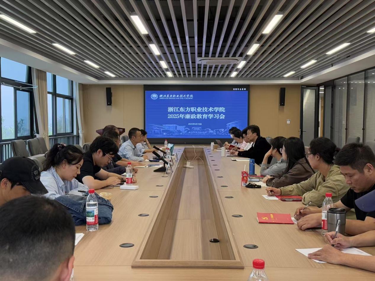 参观结束后,全体人员在浙江东方职业技术学院文成学院召开廉政教育学习会,观看廉政警示教育片《揭开腐败隐身衣》。真实深刻的案例,给在场每位党员敲响了廉洁警钟。纪检室林贤崇副主任以案说纪,讲解《中国共产党纪律处分条例》,剖析高校领域违反廉洁纪律典型案例,涉及违规公款吃喝旅游、公车使用、礼品礼金收受等问题,强调“四风”问题必须严抓不放、常抓不懈。