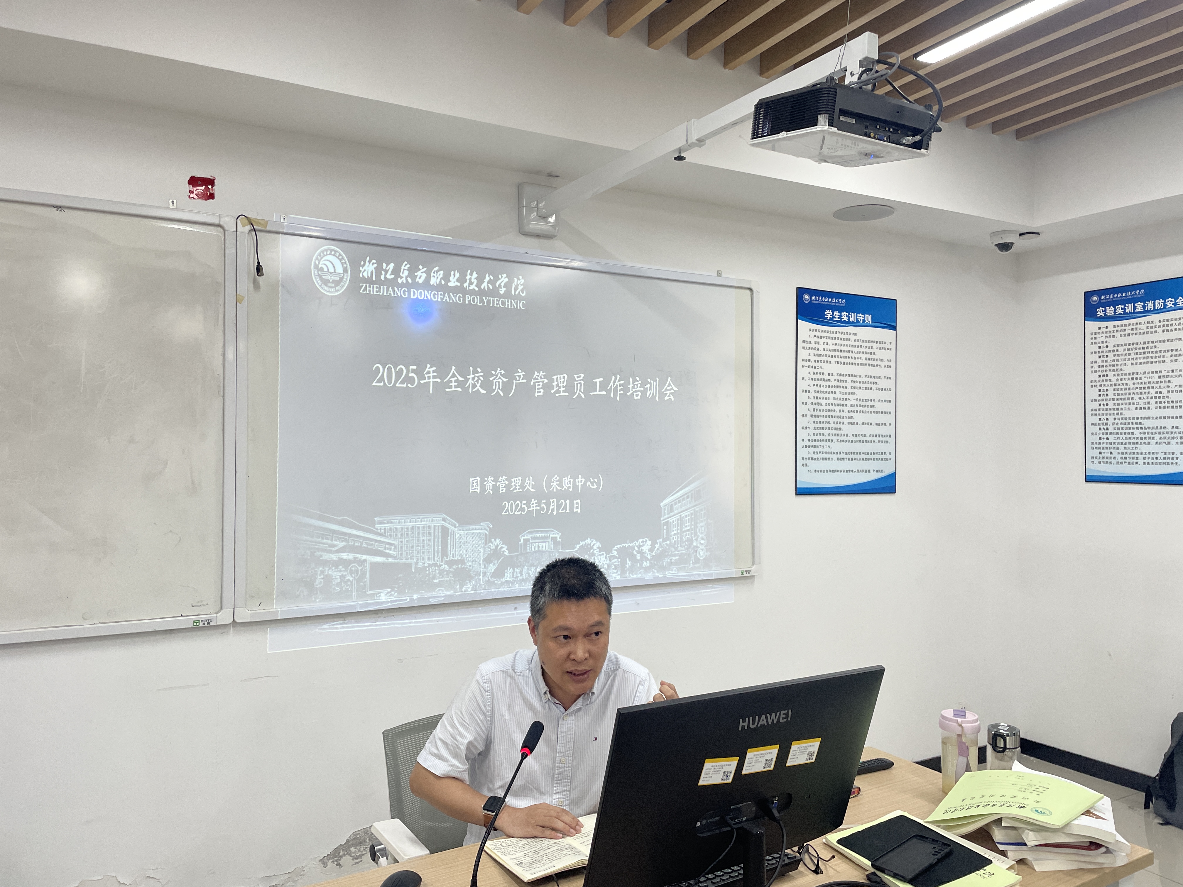 为进一步规范学校国有资产管理,提升资产管理员业务水平,5月21日下午,浙江东方职业技术学院组织召开学校资产管理员工作交流与培训会。会议由国资管理处处长吴国将主持,各部门及二级学院资产管理员参会。