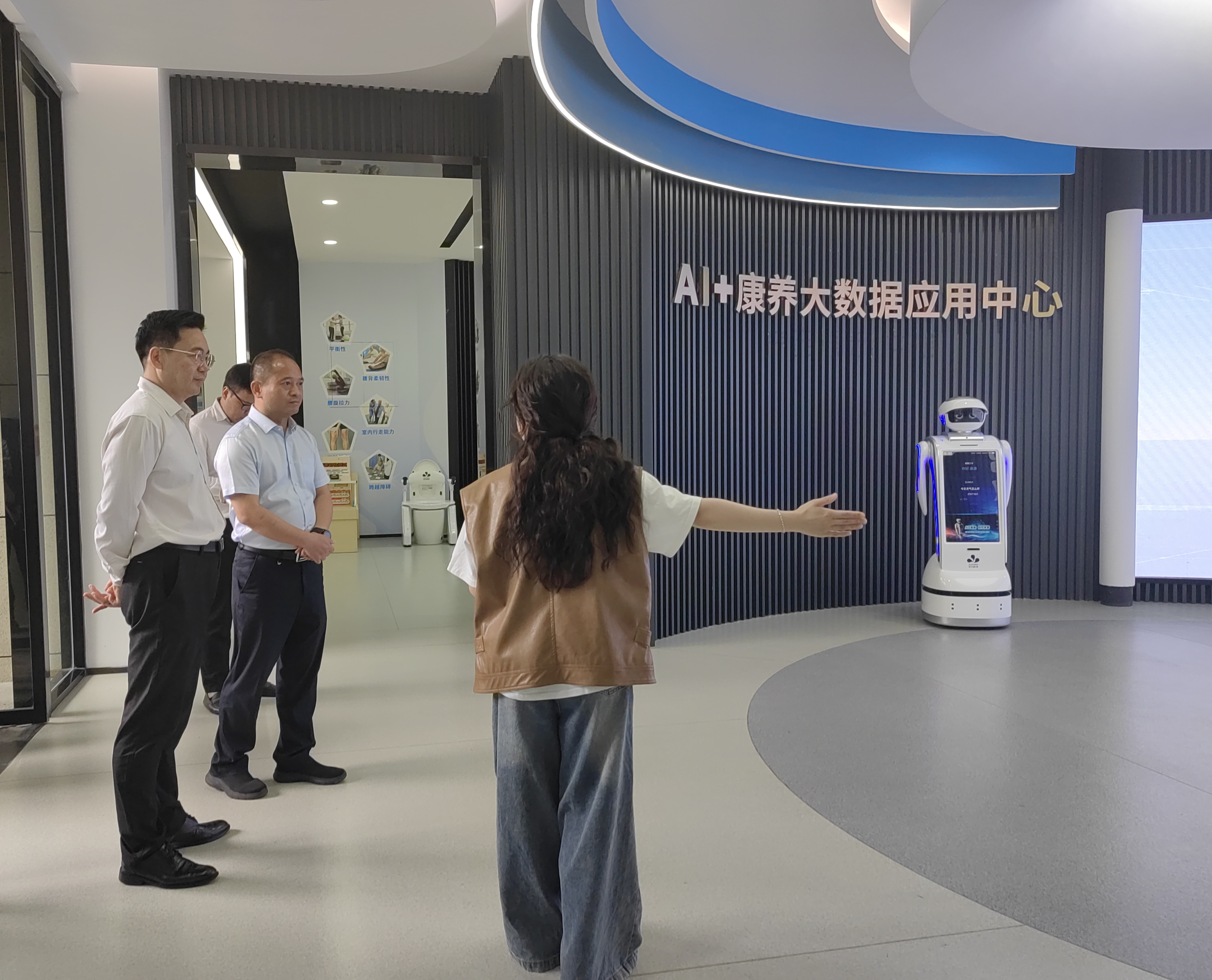 调研组实地考察走访了安保消控室、AI智慧康养协同创新中心和学校食堂。在安保消控室,详细查验了监控系统运行、人员配置及应急处置流程;在AI智慧康养协同创新中心,重点调研了人工智能技术在健康监测、环境安全预警等领域的创新应用;深入学校食堂,检查了食品安全管理。