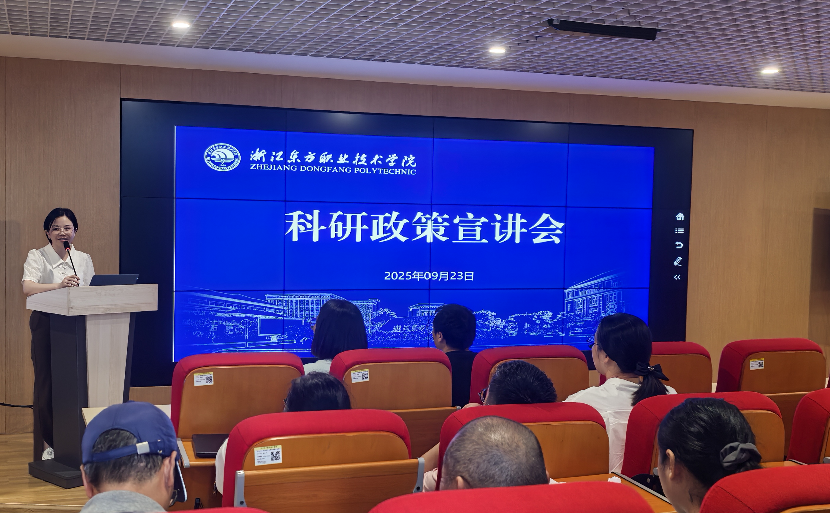 为激发科研创新活力,推动科研工作高质量发展,近日,浙江东方职业技术学院科技处在行政楼四楼大讲堂组织召开科研政策宣讲会暨科研新系统说明会。本次会议分两场举行,科技处、财务处、各学院科研秘书、科研项目负责人等相关人员参加。