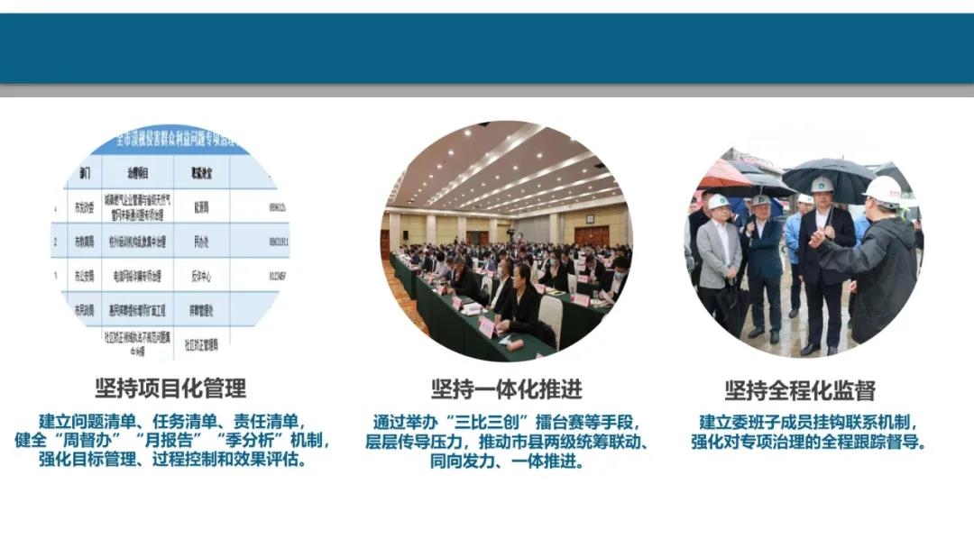 市县两级纪检监察机关统筹联动、同向发力、一体推进,切实做到全市“一盘棋”。实行项目化管理,建立问题清单、任务清单、责任清单,健全举报问题“周督办”、项目推进“月报告”、面上工作“季分析”机制,强化目标管理、过程控制和效果评估。