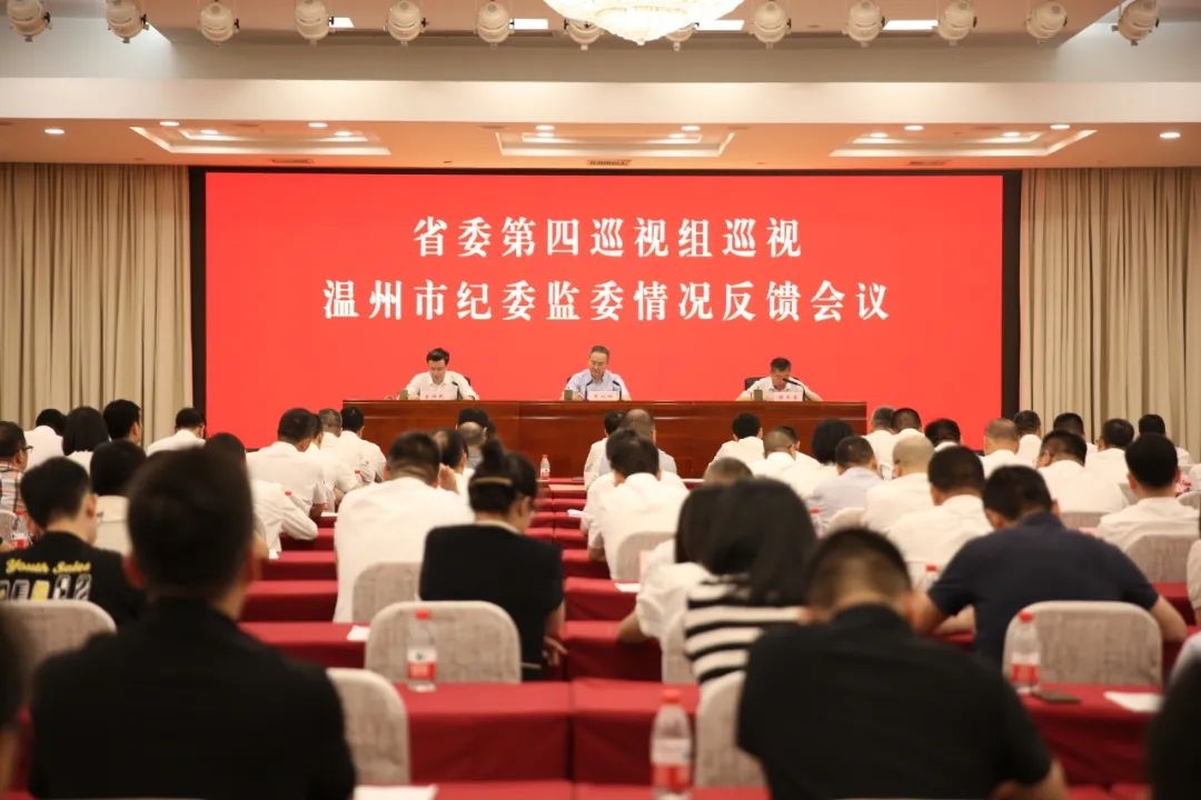 根据省委巡视工作领导小组的部署,2023年7月26日,省委第四巡视组向温州市纪委监委反馈巡视情况。省委第四巡视组组长焦旭祥传达了省委书记易炼红关于巡视工作的讲话精神,并对抓好巡视整改工作提出要求。巡视组副组长陈书来向温州市委常委、市纪委书记金焕民和市纪委监委领导班子反馈了巡视情况。金焕民主持向领导班子反馈会议并就做好巡视整改工作讲话。